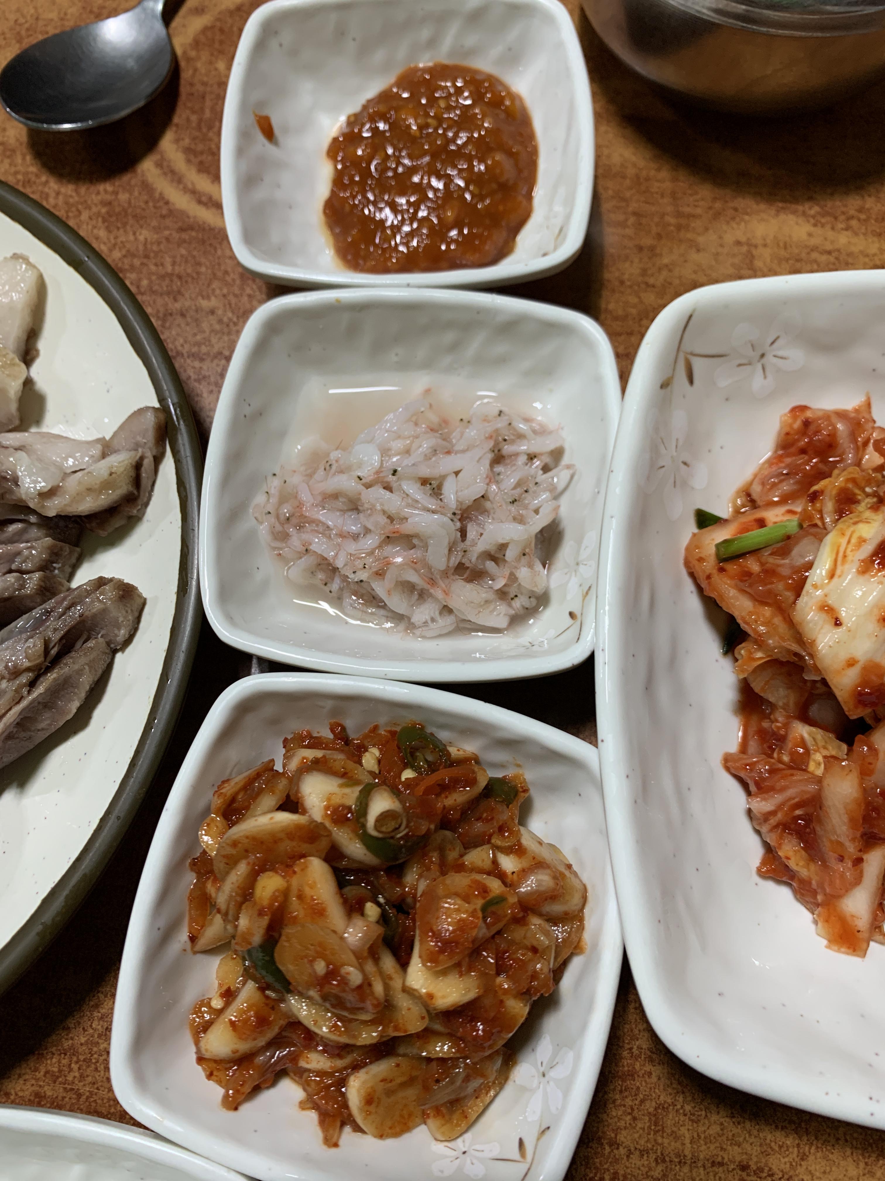 수육엔 새우젓이랑 부추무침이랑 함께 먹으면