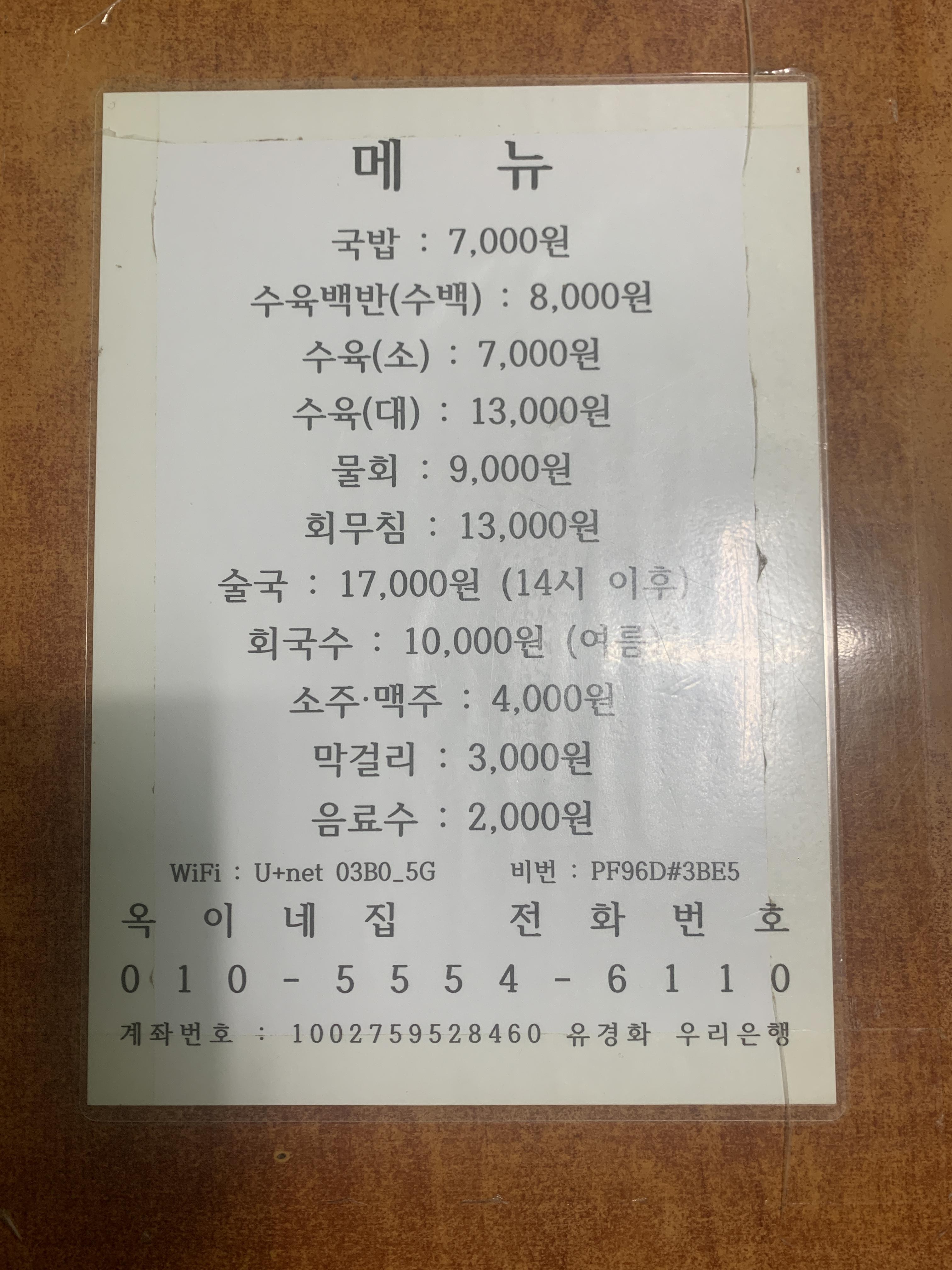 메뉴는 국밥, 수육, 물회, 회국수 까지