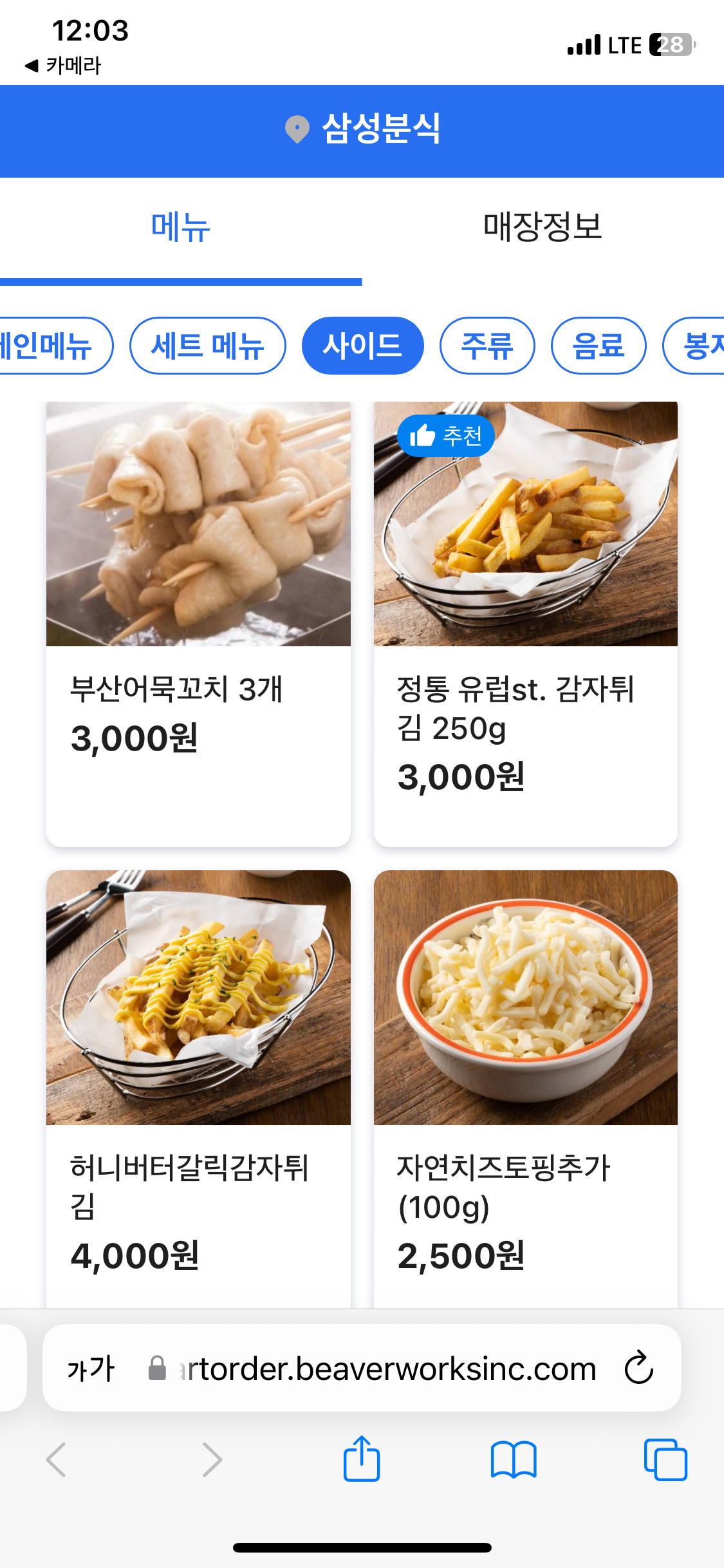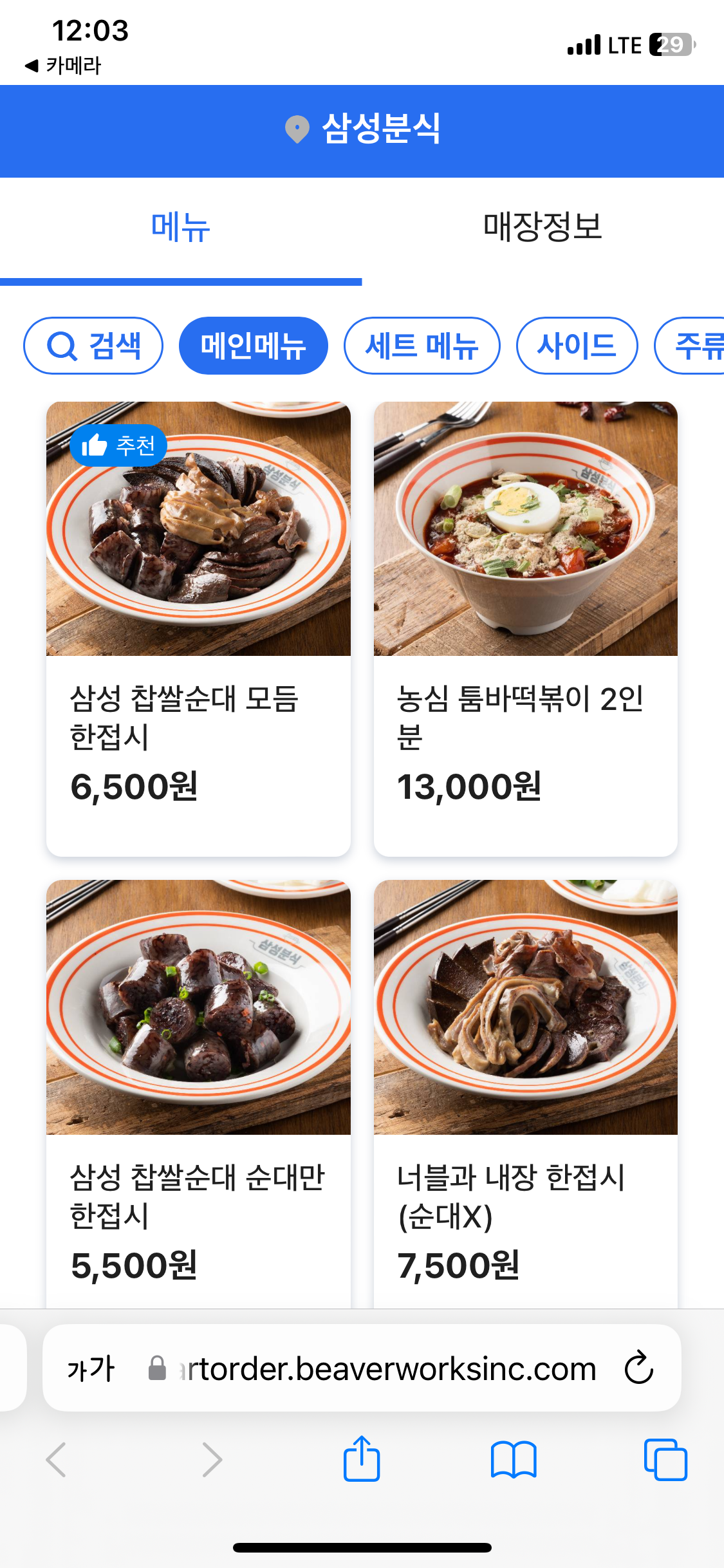 메뉴는 식탁에 뭍어있는 큐알코드를 찍으면 나온다.