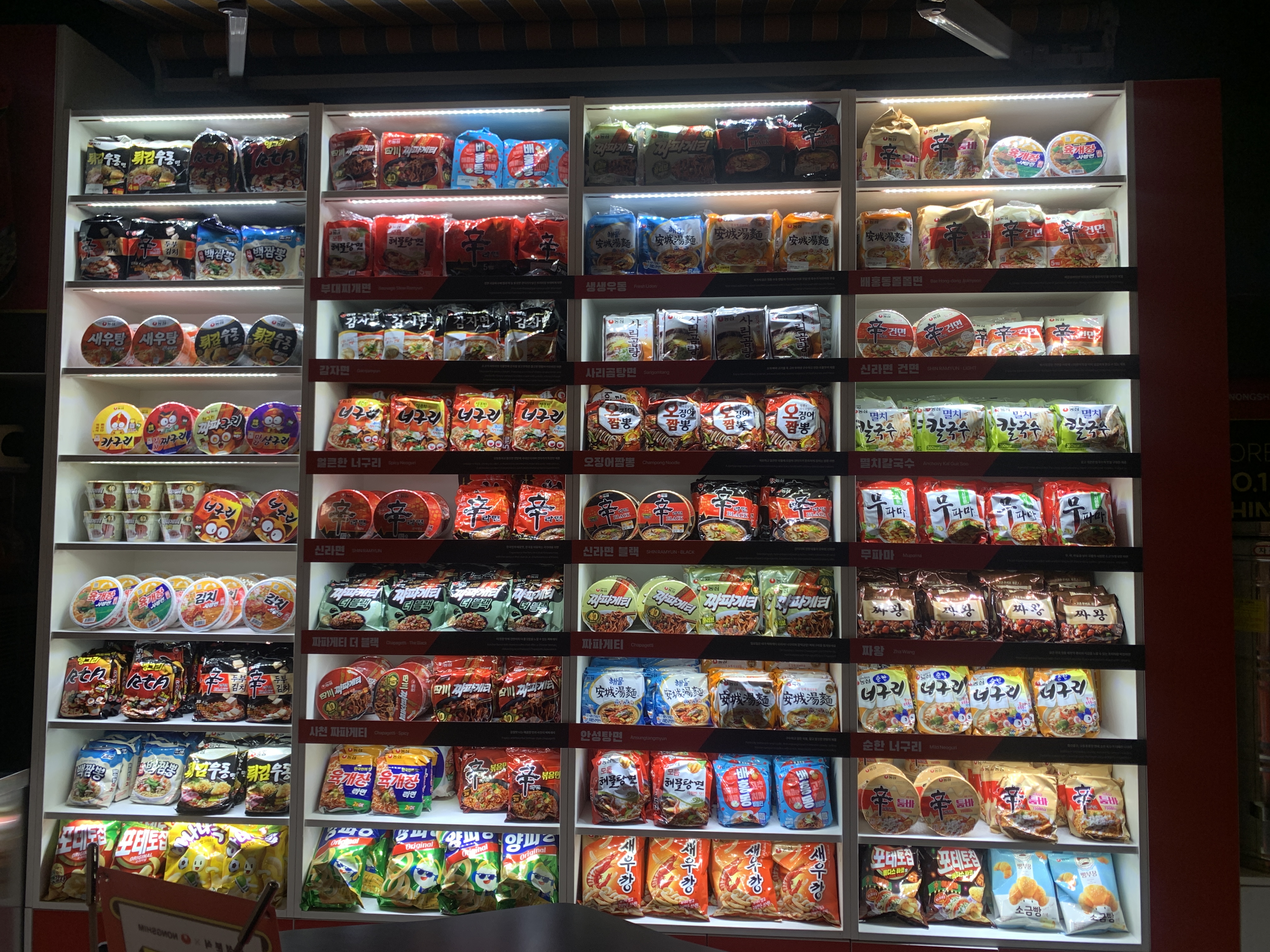 들어가서 가장 놀란 부분은 농심의 많은 종류의 라면들이 진열되어 있었던 점이다.