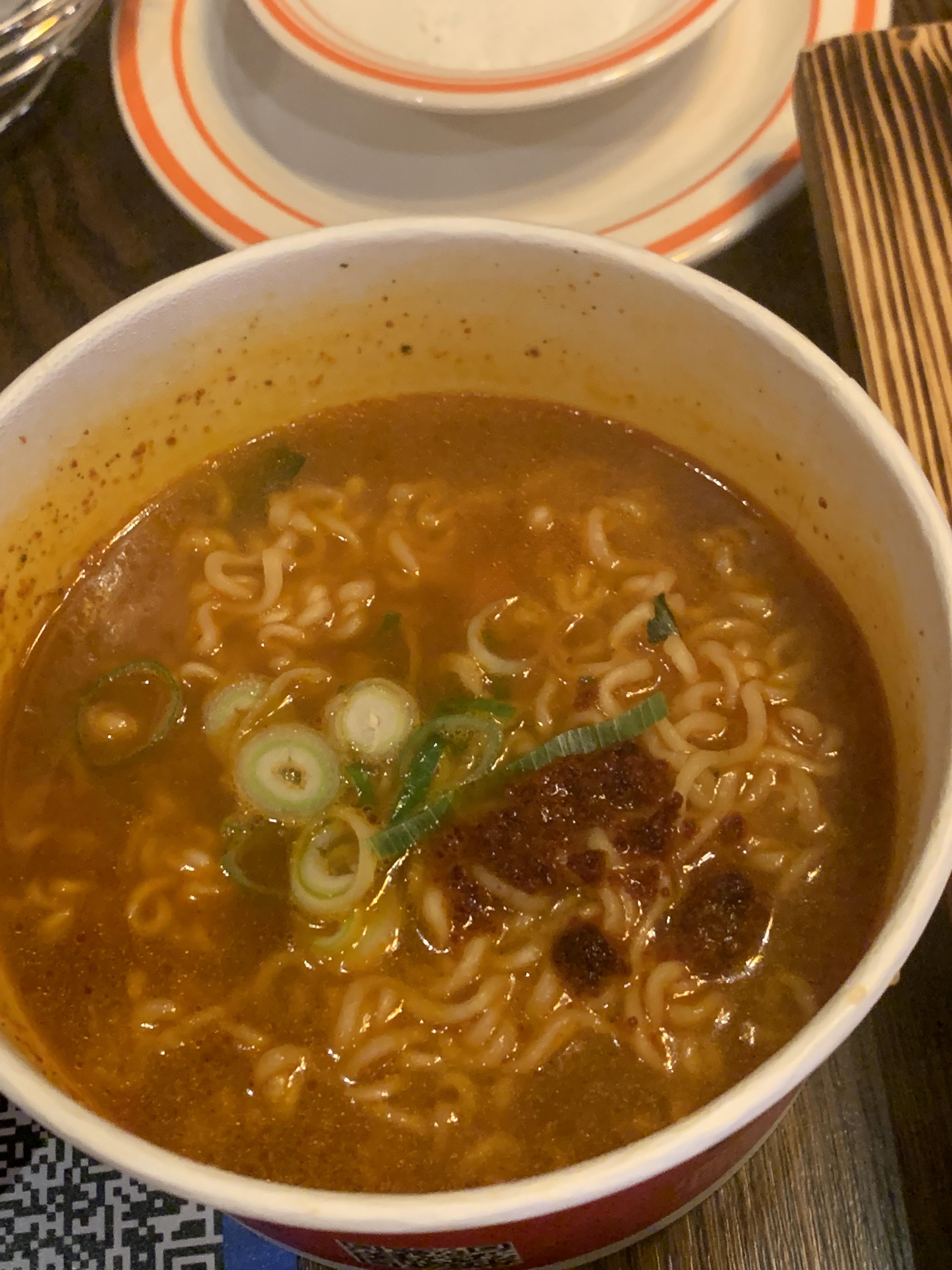 쉐프님이 만드신 육수를 넣고 끓여주는 동안에 신라면은 한강라면으로 끓여서 같이 먺었다.