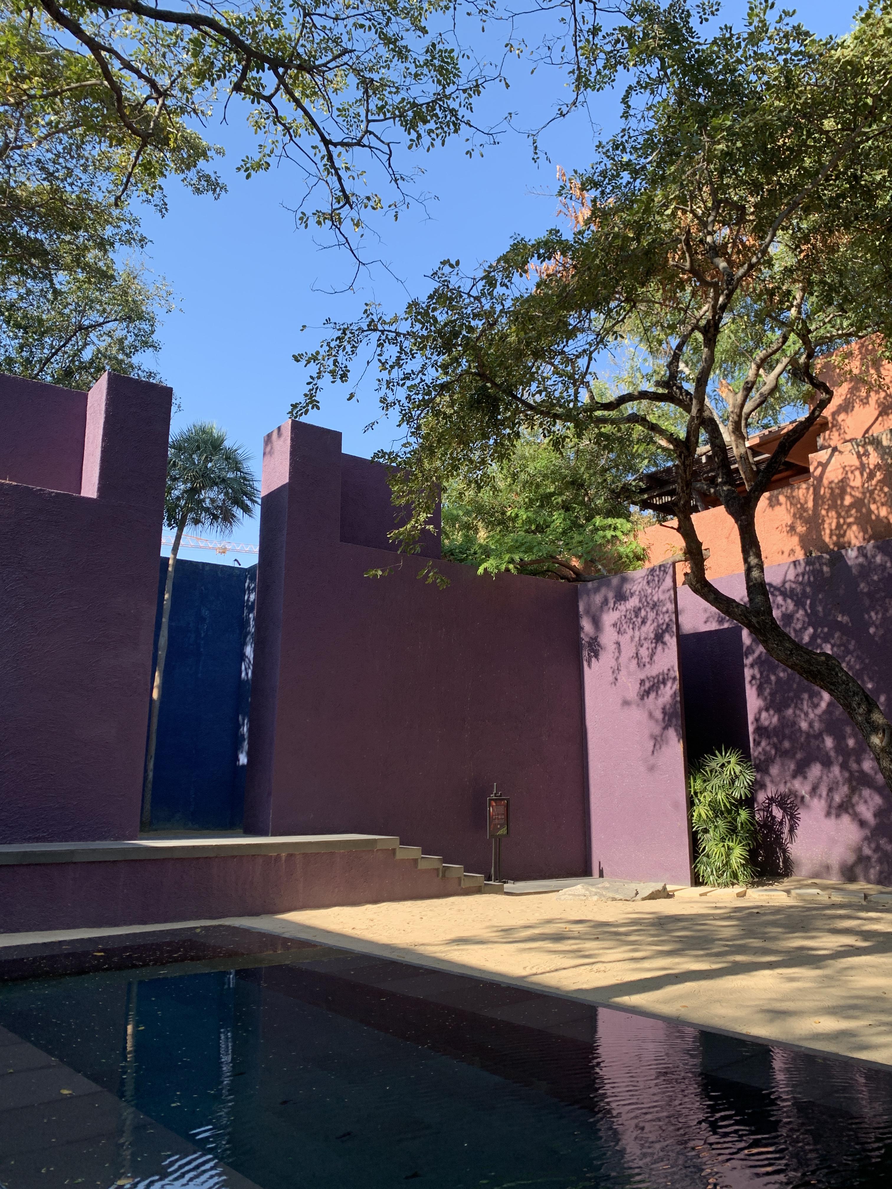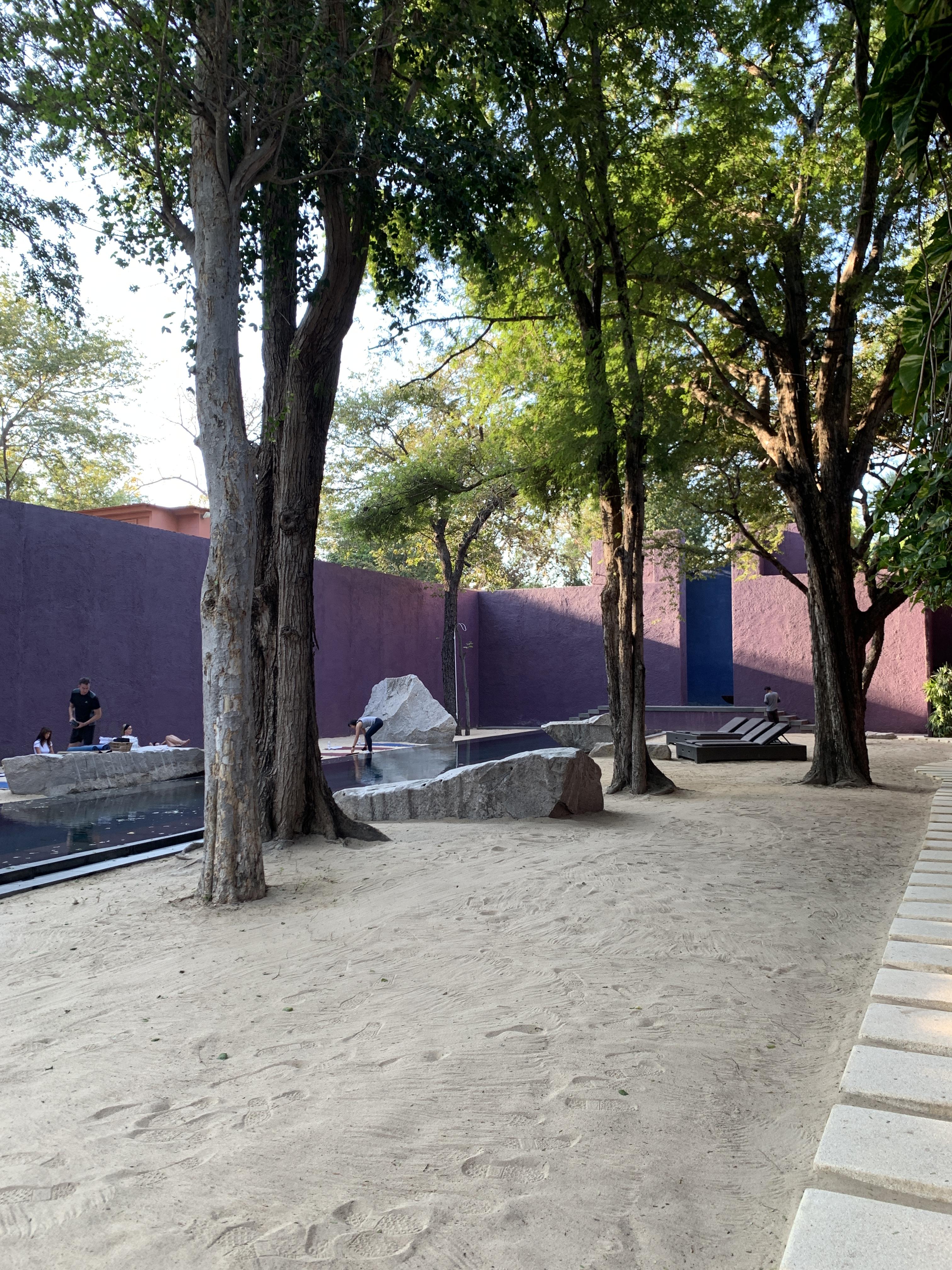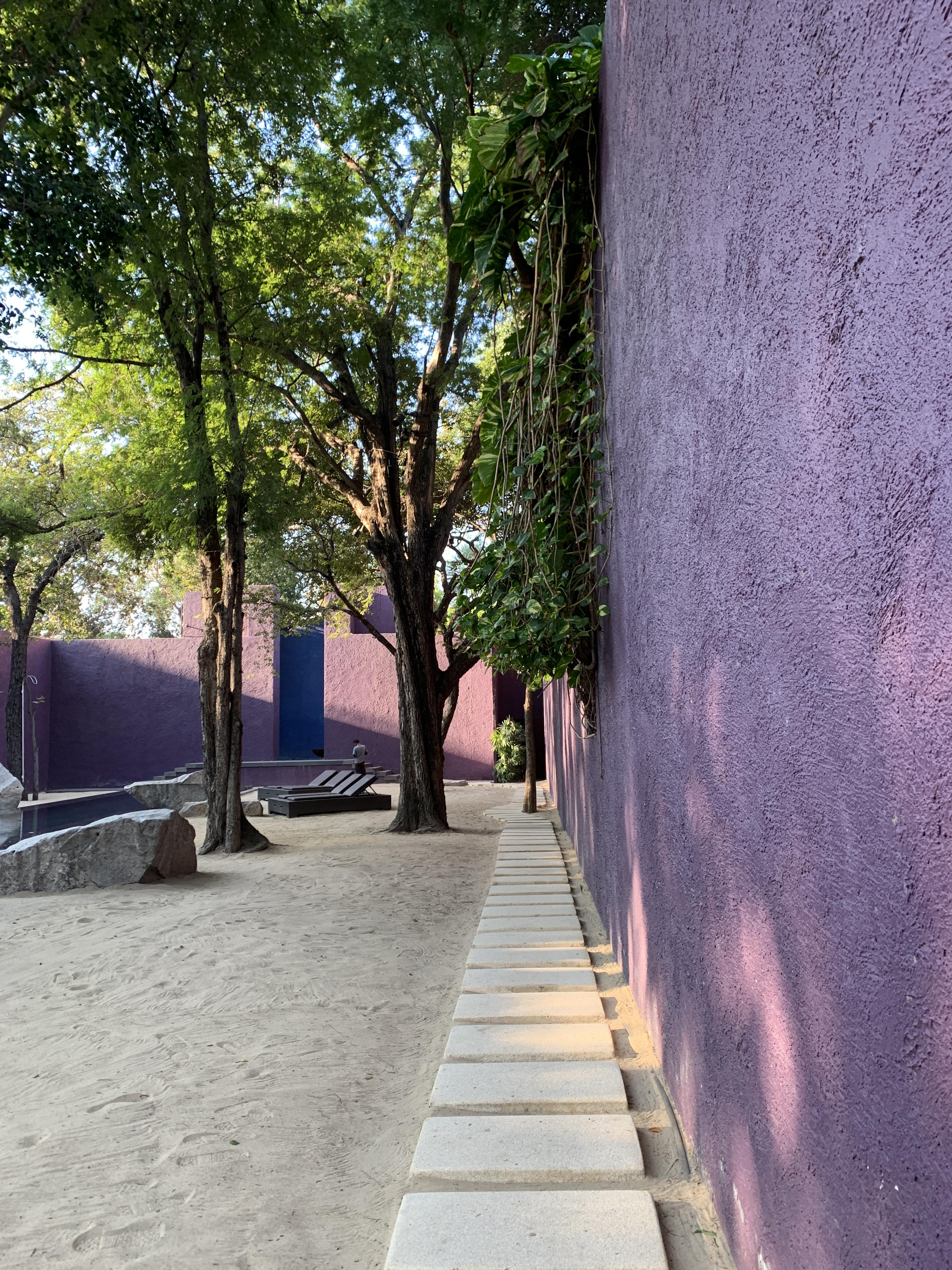 초록 나무, 보라빛 벽, 물, 파란문 까지..