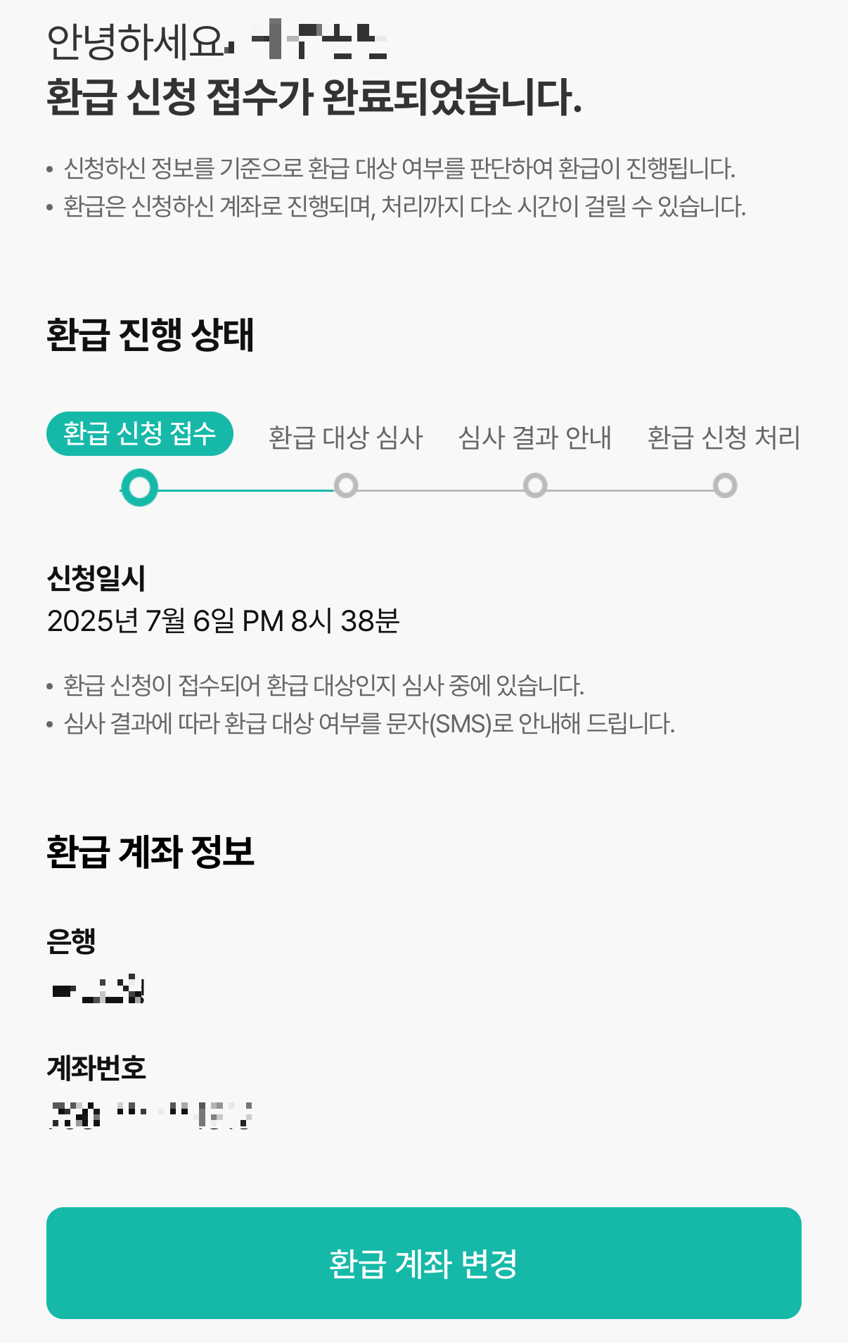 5. 환급 신청 완료 → 문자 알림 대기