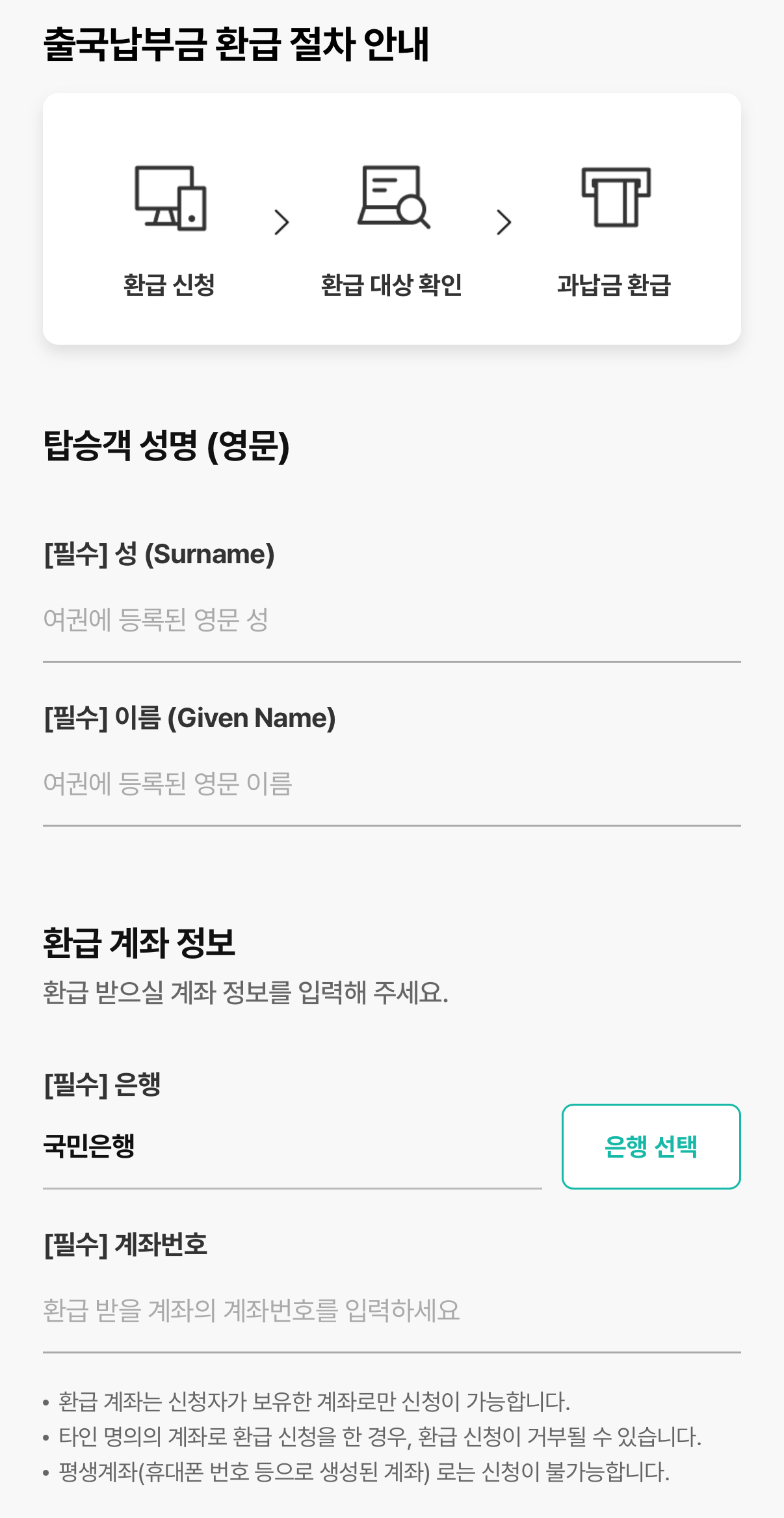 4. 여권 영문 이름 + 본인 계좌번호 입력