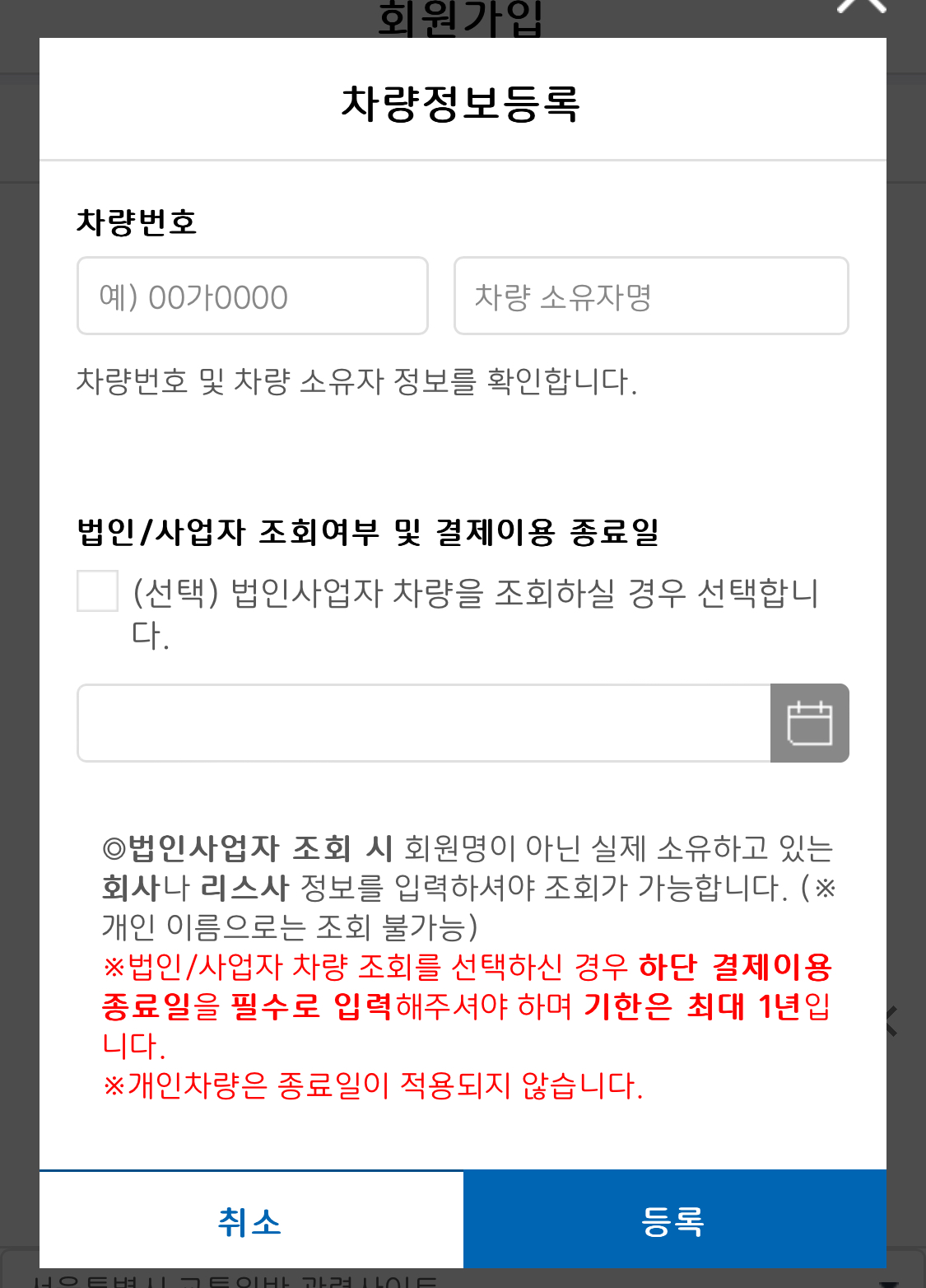 (차량 소유주만 등록 가능)