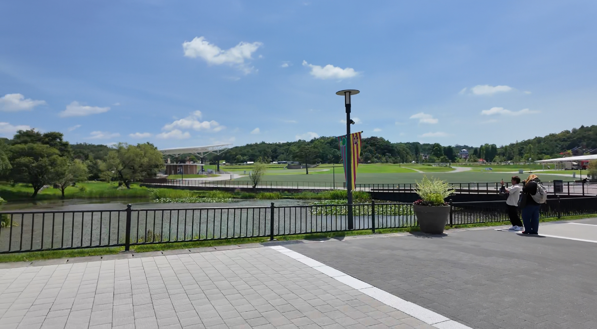 계단을 내려가면 지브리파크 공원이 넓게 초록초록 하게 펼쳐집니다.