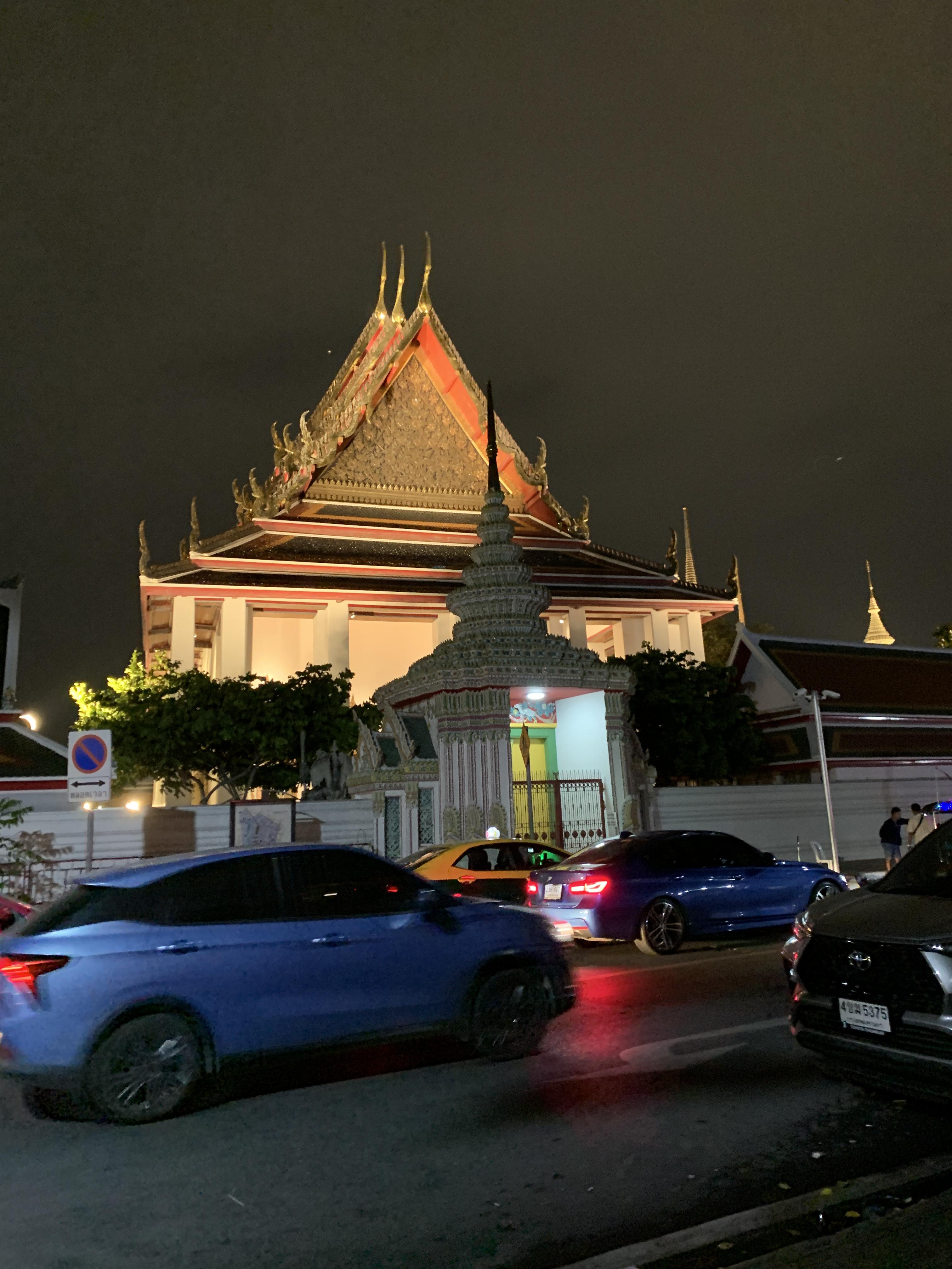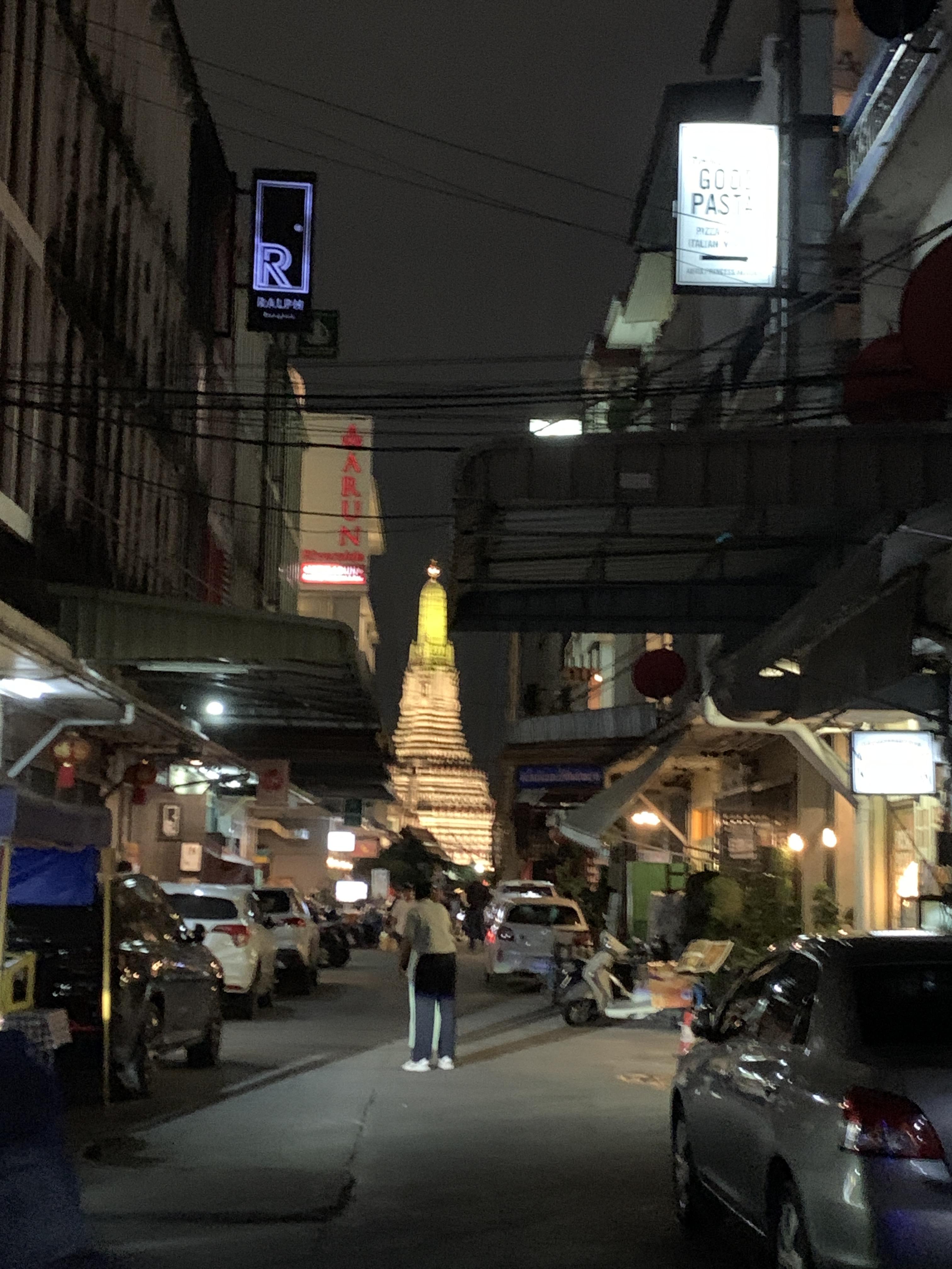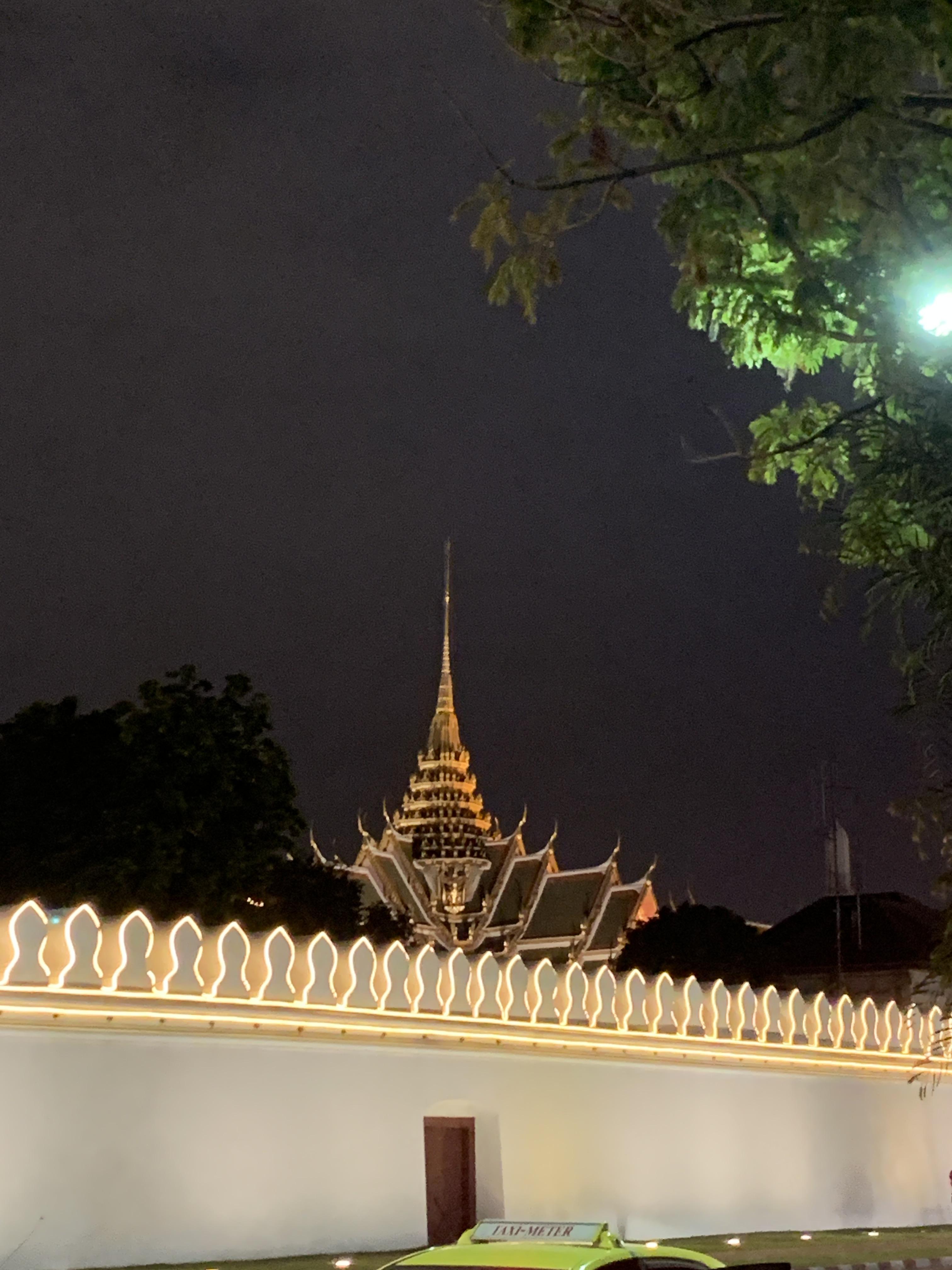 이날은 레스토랑 목적이 아닌 정말 왓 아룬 뷰를 보기 위해 왓포선착장을 찾아 가던 길 이었어요. 택시에서 내려 걸어가던 길에 보이던 왕궁. 어딜 가나 밤에도 화려하던 방콕 거리입니다.