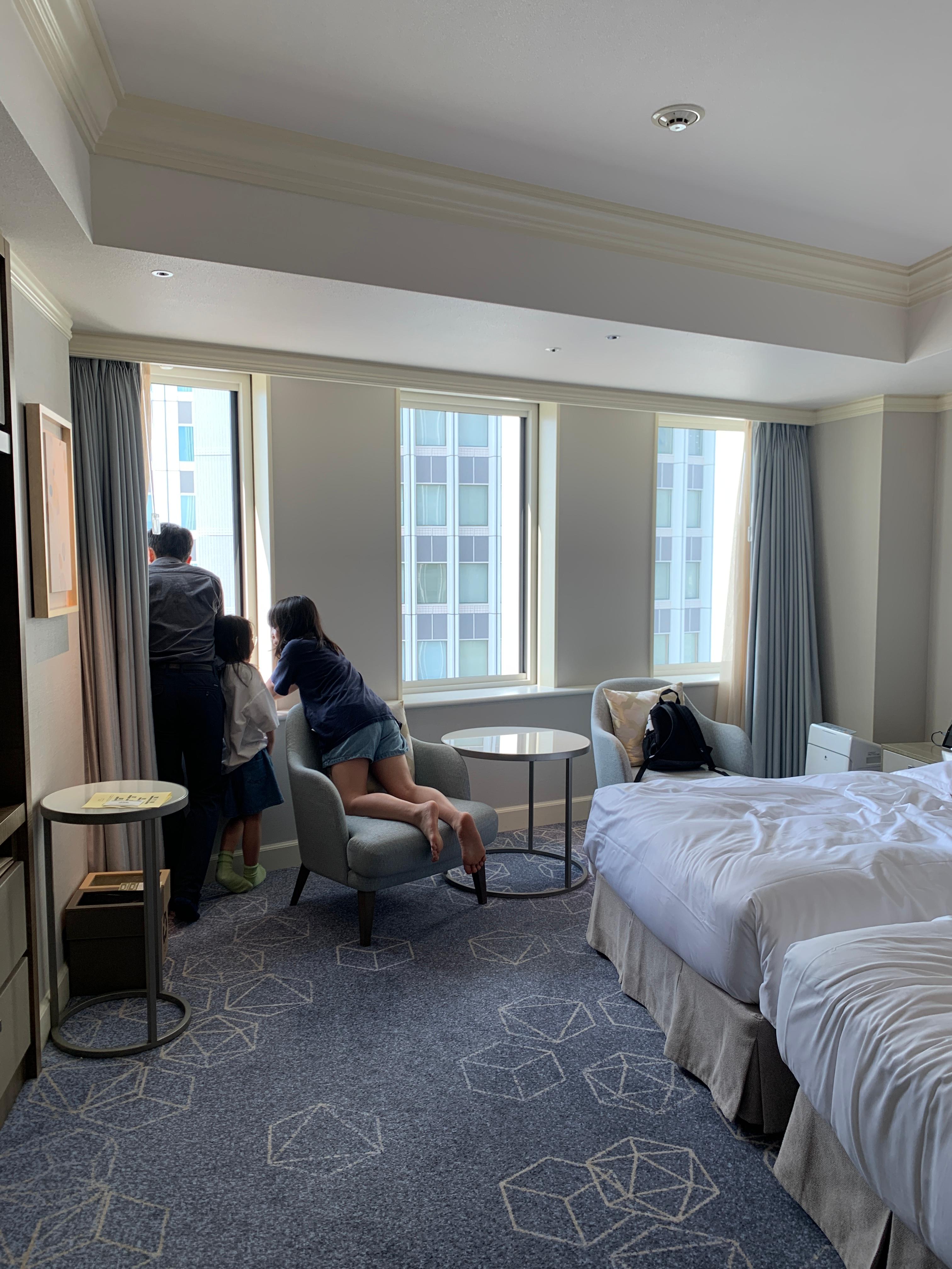 나고야 메리어트는 일단 15층에 로비가 위치에 있기 때문에 뷰가 매우 좋아요. 특히 배정받은 객실은 26층 고층 객실을 배정받아 나고야 시내 전경과 야경을 한눈에 볼 수 있었습니다. 아침, 저녁으로 아이들이 창가에서 전철과 신칸센이 오가는 모습을 구경하며 무척 좋아했어요.